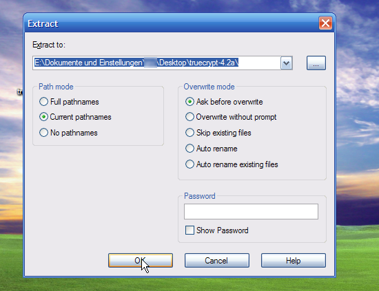 In der 7-Zip-Dialogmaske kann man den Speicherort der entpackten Datei(en) angeben. Standardmäßig wird der selbe Ort vorgeschlagen, in dem sich auch das Zip-Archiv befindet. Klicke auf OK und die Dateien zu entpacken.