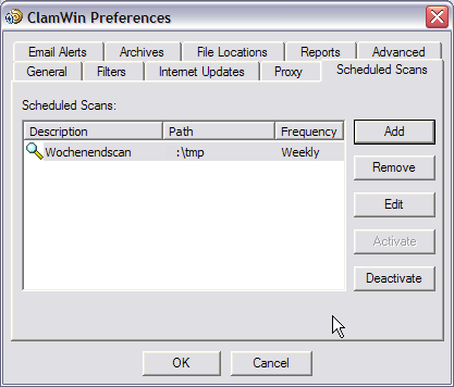 Clamwin bietet die Möglichkeit einige administrative Aufgaben zu automatisieren. Rufen Sie hierfür den Punkt Preferences im Tools-Menü von Clamwin auf.